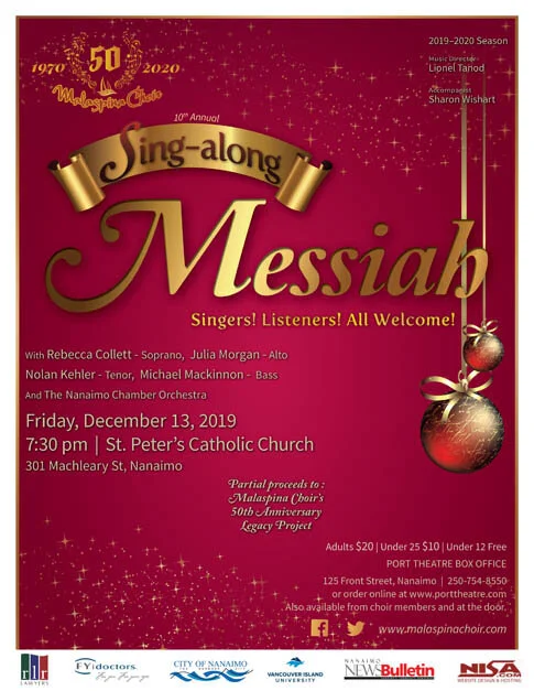 Malaspina Choir has been delighting Nanaimo audiences with its choral performances for 50 years, and this Christmas, it celebrates the 10th anniversary of its popular Sing-Along Messiah.