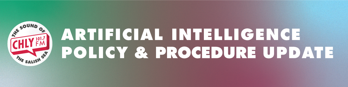 This policy update follows a previous station update on Artificial Intelligence, as well as recent developments in AI generated music. Our station, CHLY 101.7FM has seen an uptick in AI generated music submissions to our music library, and because of this, an Interim Artificial Intelligence Policy and Procedure has been drafted by Executive Director Jesse Woodward: